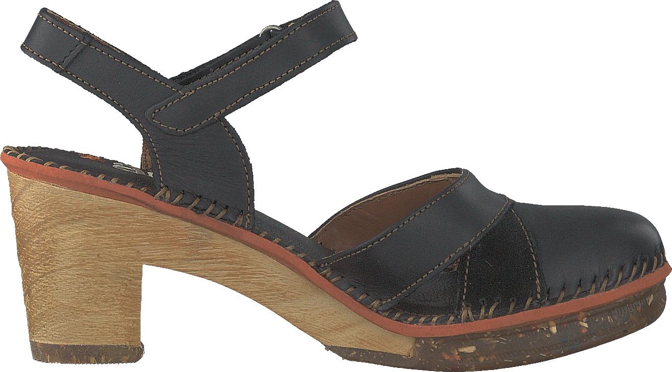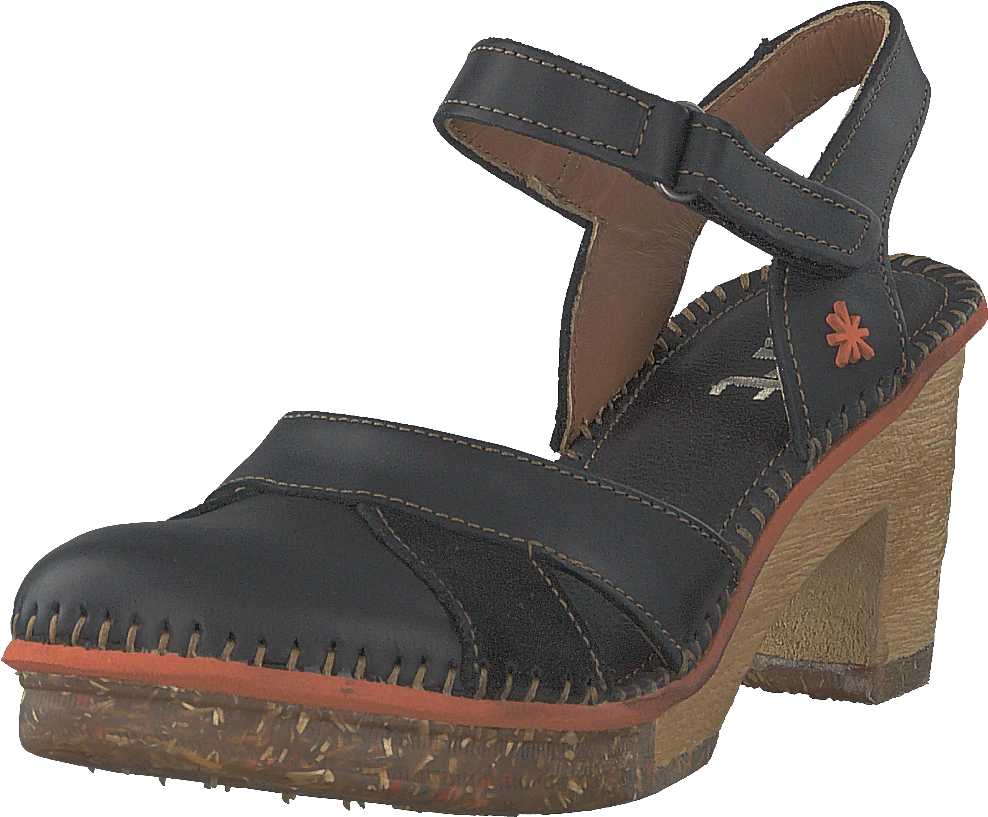 Amsterdam är en klassisk klack. Denna stil är gjord av äkta läder och har en peep-toe-design med låg chunky häl.
