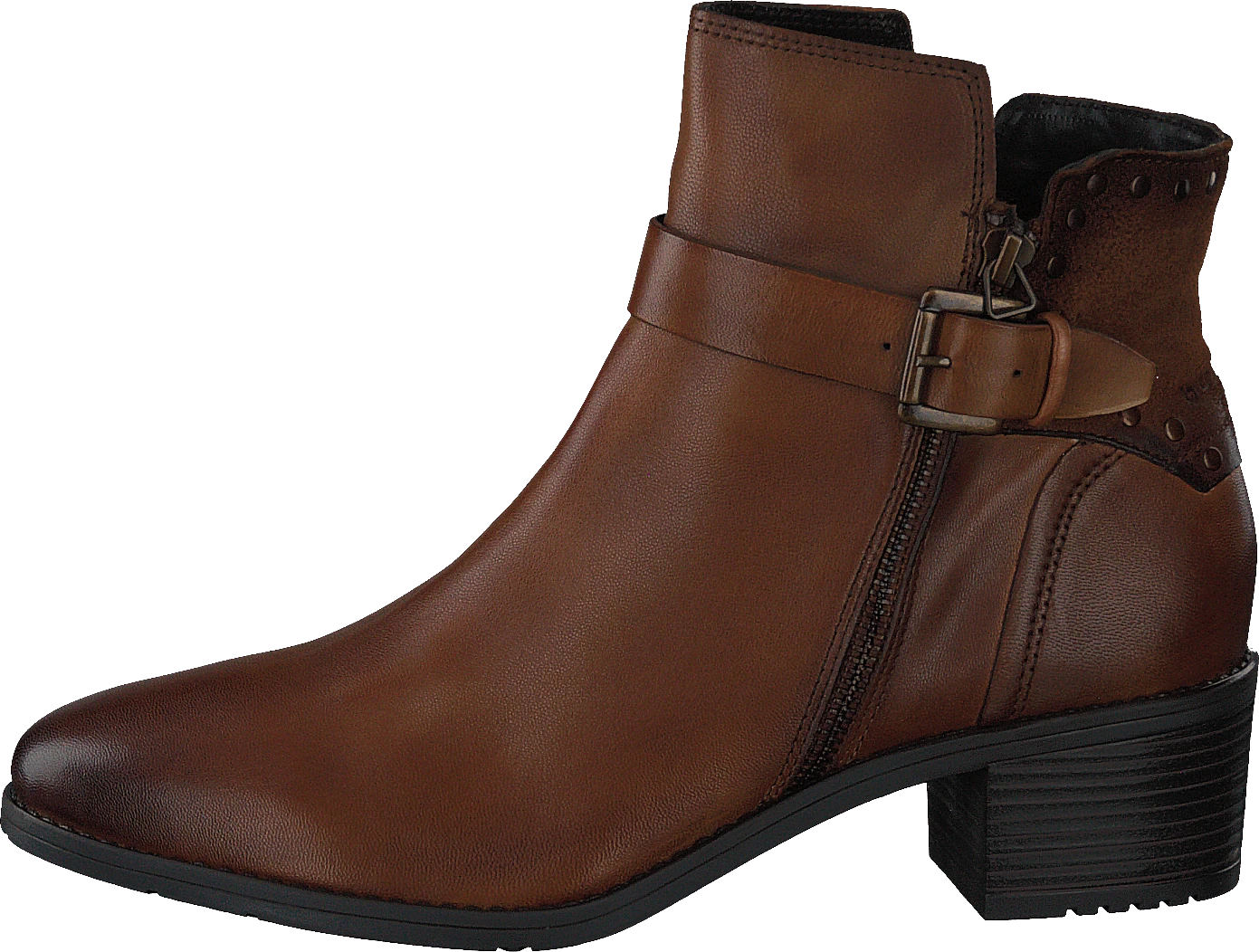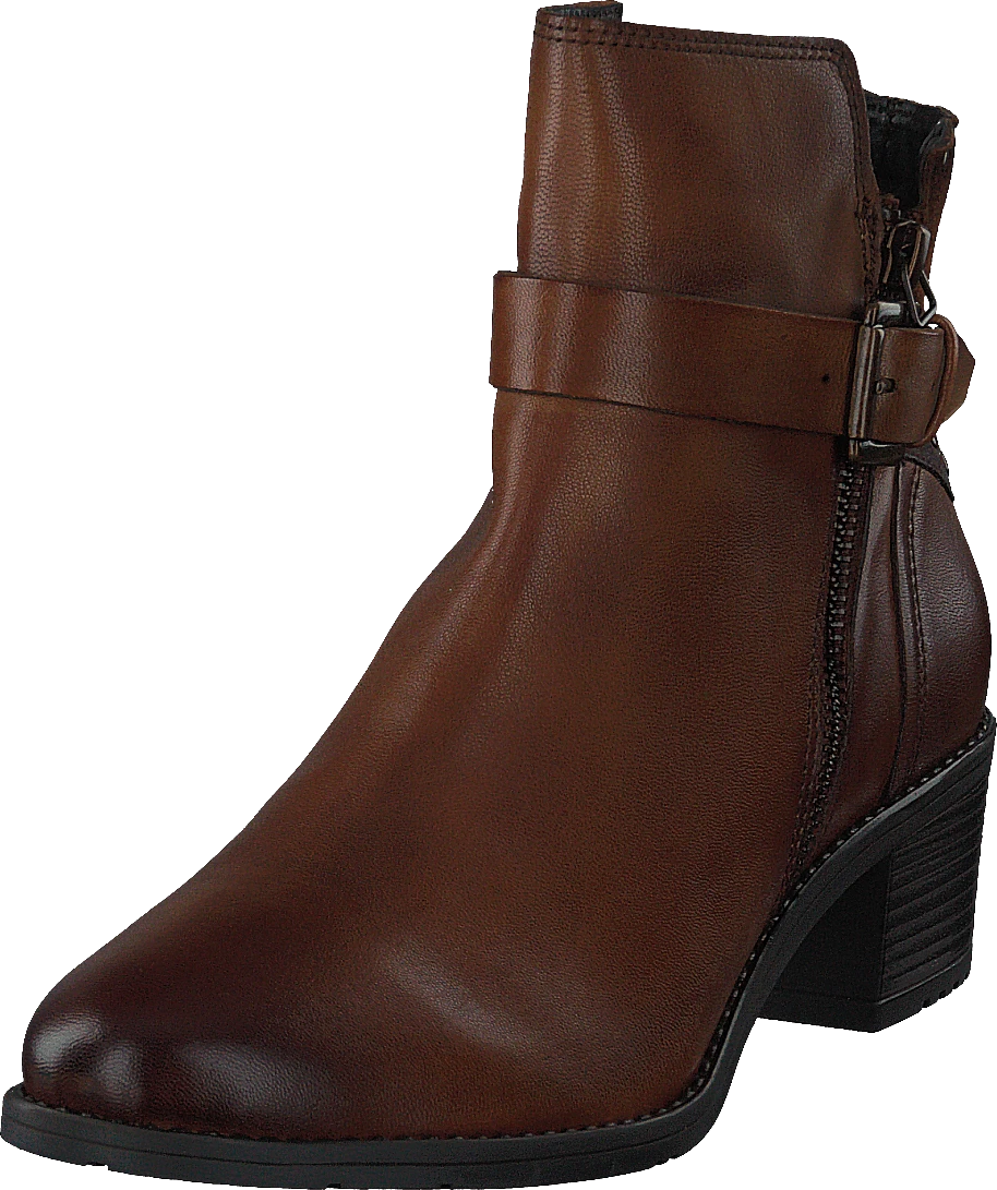 Bekväm och elegant – den konjaksbruna stöveln ger komfort och grepp tack vare det fina lädret och den bekväma passformen, medan de enkla linjerna och det gyllene dekorativa spännet på skaftet ger din outfit en moderiktig touch.