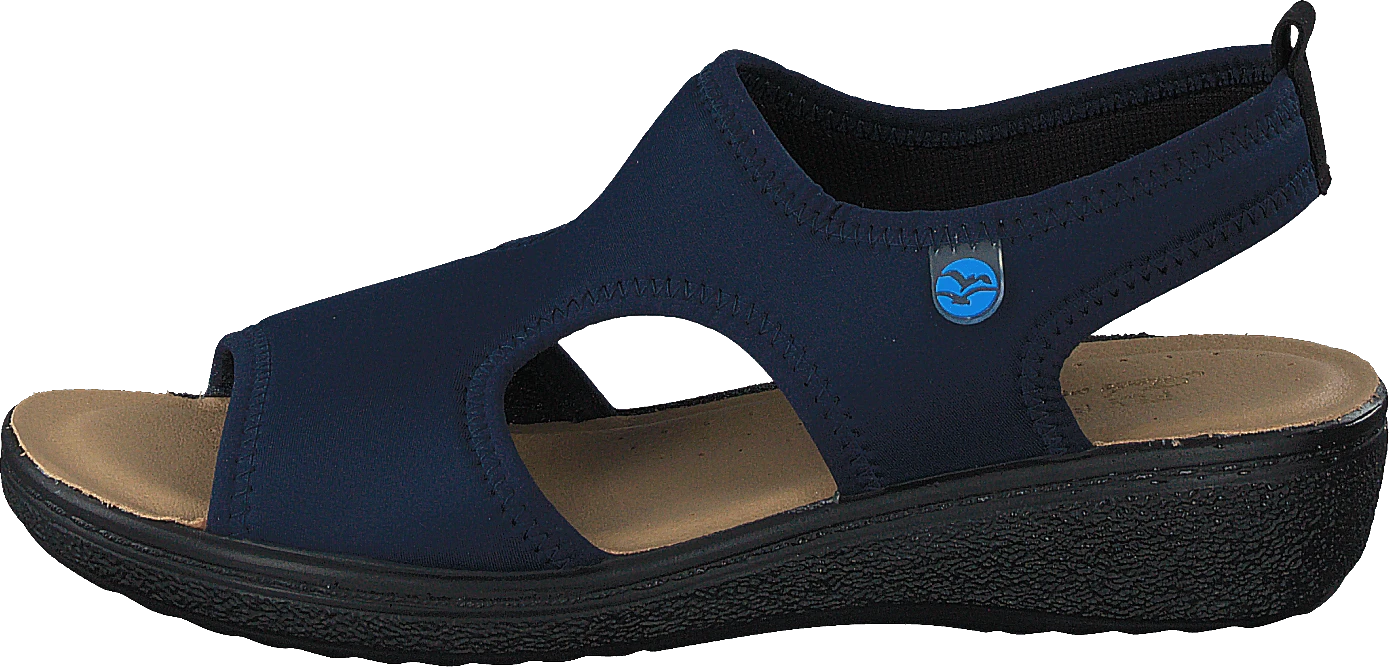 Dessa sandaler är en tidlös stapelvara. Materialet är tillverkat av syntetiskt läder och de är lätta att ta på med ett kardborreband upptill på foten. Färgen är blå, vilket passar bra med de flesta outfits.