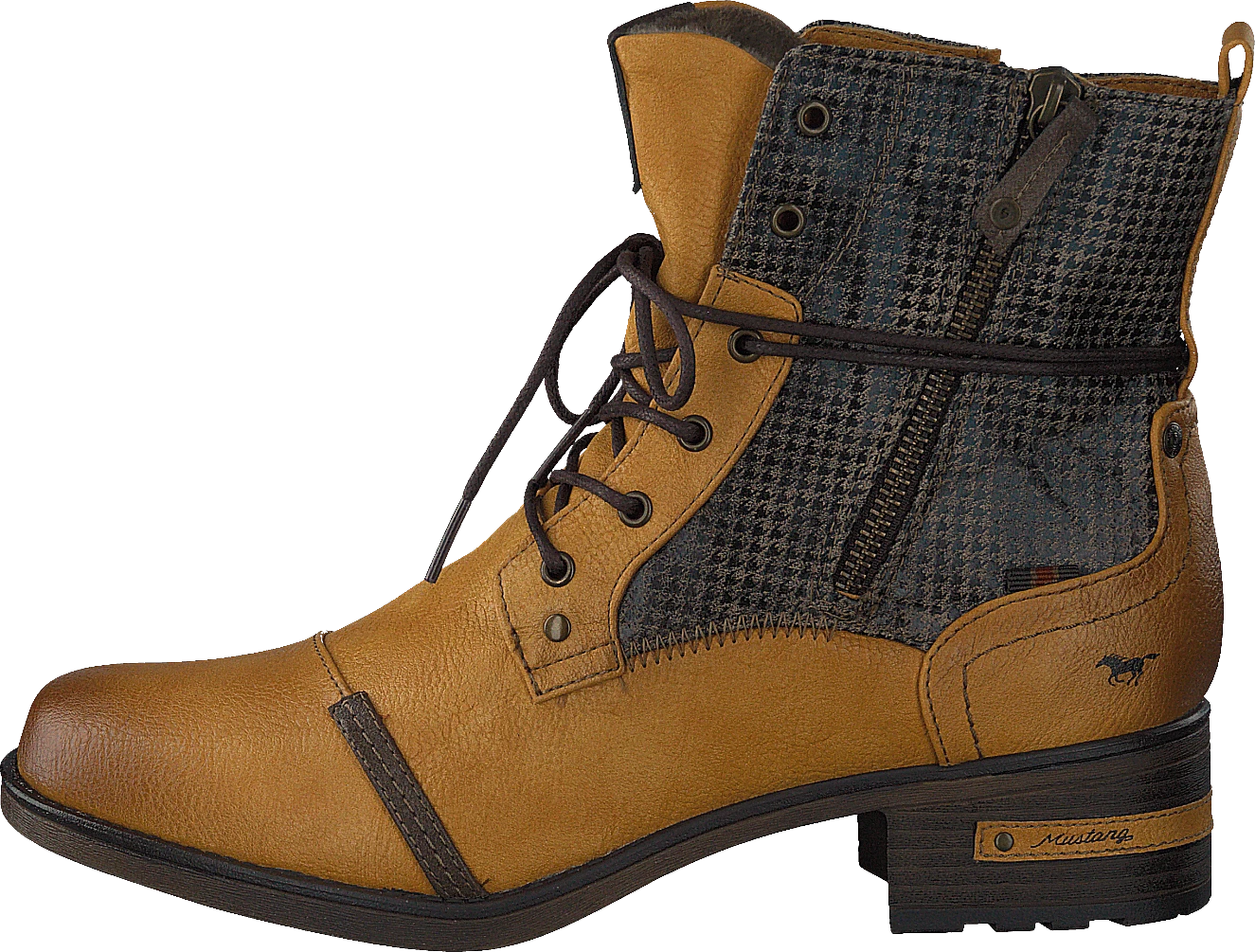 Dessa Mustang-läderstövlar är ett fantastiskt fynd för alla som letar efter något snyggt som kan bäras var som helst. Det bruna lädret är smalare och spetsdesignen hjälper dig att hålla dig på trenden den här säsongen. Dragkedjan och spännet gör dessa stövlar lätta att ta på sig, oavsett hur hektisk din dag är.