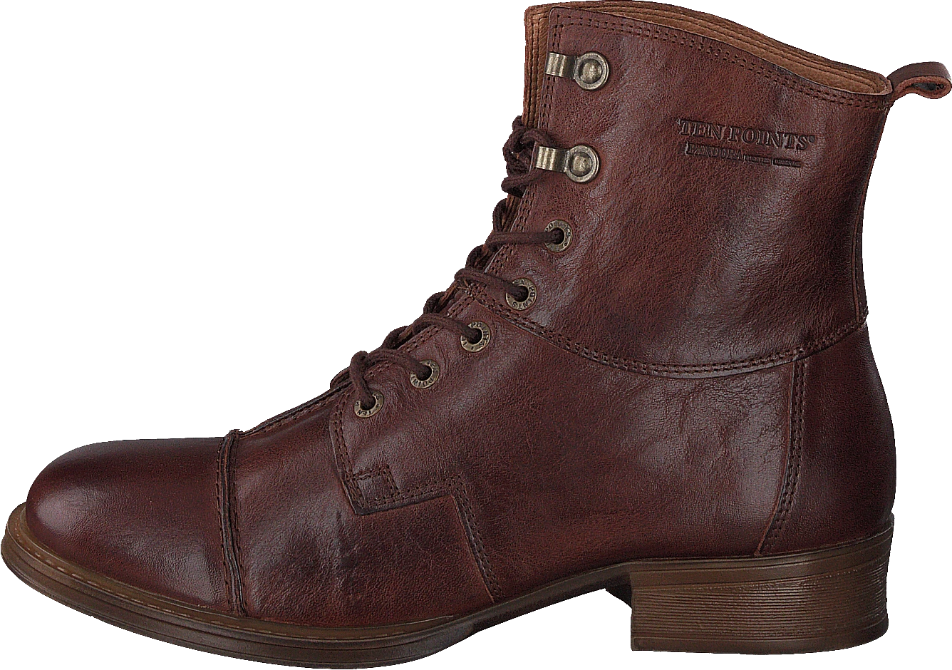 Med brunt läder och spets är detta par stövlar perfekta för vardagskläder. Stövlarna är från Brand Ten Points och kommer i brunt. De har ett material av läder. Denna produkt är kategoriserad under kvinnor och faller under kategorin skor, med en toppkategori av stövlar. De kommer också i en färg, brun.