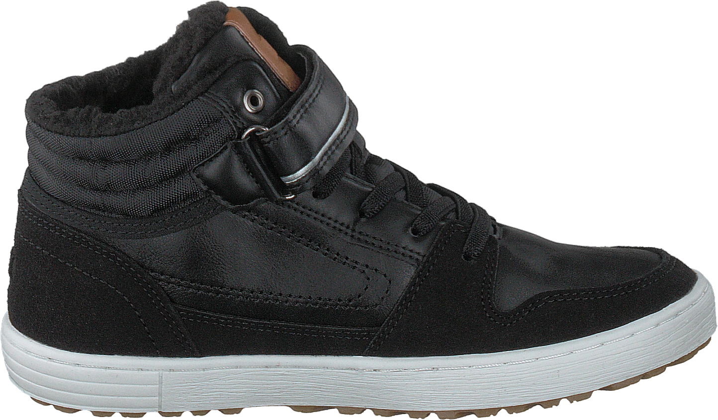 En cool high top sneaker i mocka och konstläder. Härligt varmfodrad med en EVA innersula håller foten varm och torr. Slitstark greppvänlig yttersula i gummi. Fast elastisk snörning med kardborreband ger optimal passform och är lätt att ta av och på. Alla skor från PAX är fria från PVC, Teflon, sexvärt krom, PTFE och andra fluorerade kolväten.