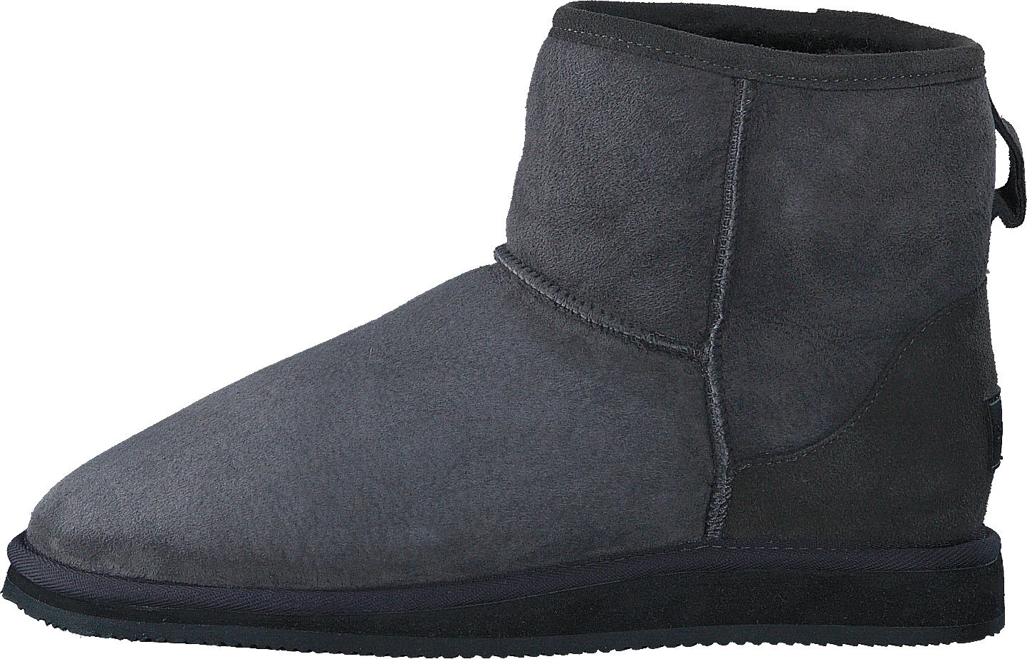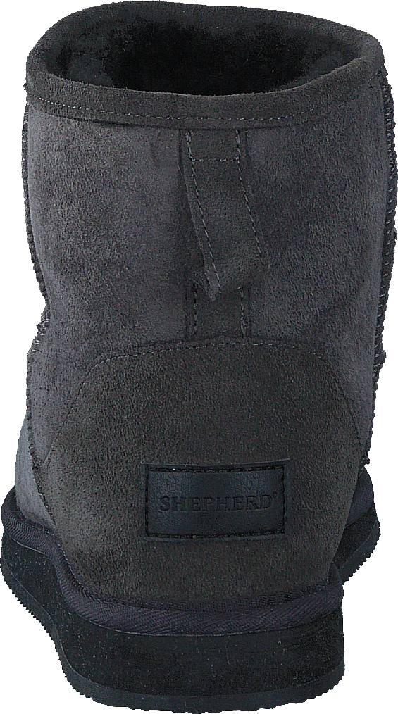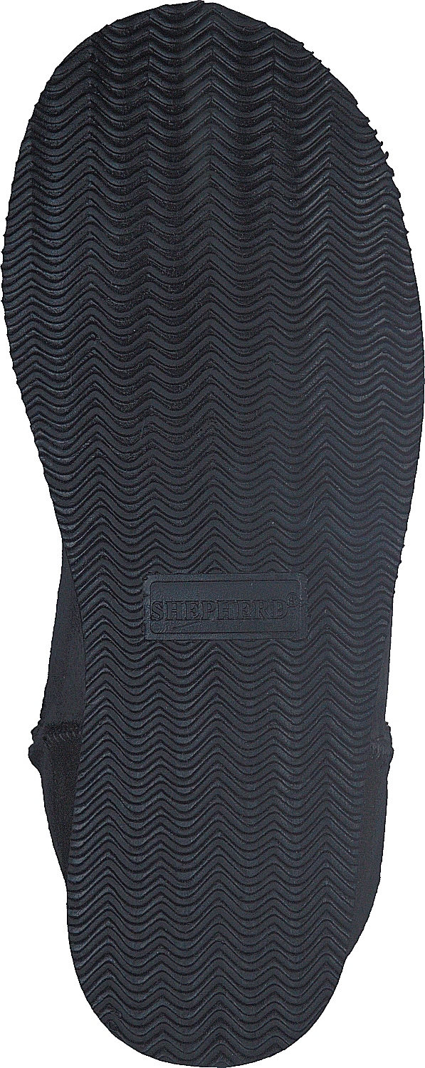 Herde Laura. Ett par ankelhöga stövlar i fårskinn och insida i skön och varm fårskinnspäls. Stöveln har dekorativa ytsömmar och textilkanter runt sula och skaft. Häller bakom. 1 cm tjock yttersula i gummi som är isolerande och bekväm dämpning från den kalla ytan.