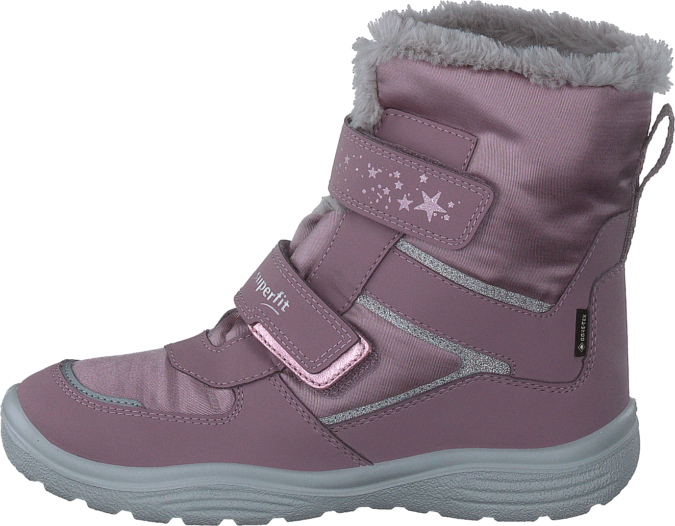 Vinterkängan CRYSTAL visar sig vara en riktig superstjärna i snö och kyla. Det beror delvis på det varma GORE-TEX-fodret som superfit-kängan är utrustad med. Det håller fötterna alltid mysiga och torra. De högkvalitativa textilierna och reflekterande materialen gör den förtrollande skon funktionell. Samtidigt säkerställer charmiga designelement som plyschkragen på ovandelen, glittrande stjärnor och glansiga detaljer ett stilrent utseende. Två justerbara kardborreband och en hälögla gör det lättare att komma in i snökängorna och ger ett stadigt grepp. Och den superlätta men ändå halkfria PU-sulan lovar ett säkert grepp – även i halt terräng. Samtidigt har det en dämpande effekt. En annan praktisk funktion är den utbytbara innersulan som gör det enkelt att byta fotbädd vid behov. CRYSTAL finns i WMS-bredd M.