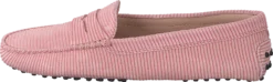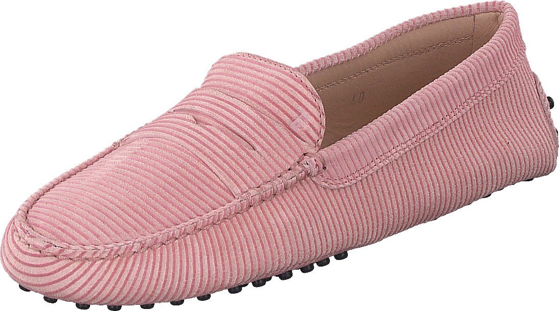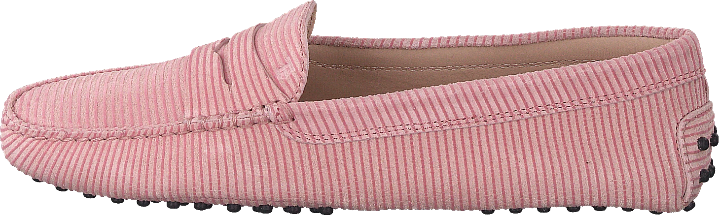 Gommino Loafers är tillverkade i mjuk rosa mocka, med en rund tå och en slip-on-stil med ett brett elastiskt band som kan justeras för en enkel passform.